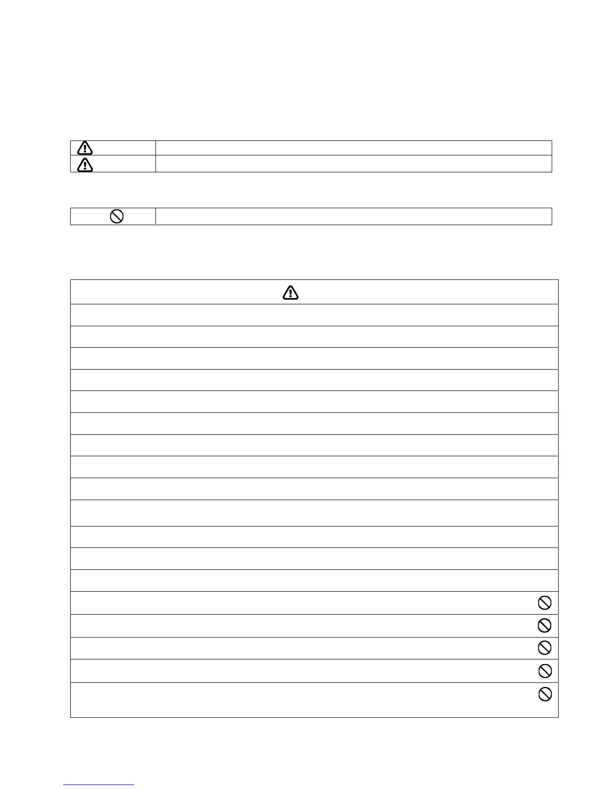 The caution items stated here must be followed because these important contents are related to safety. The