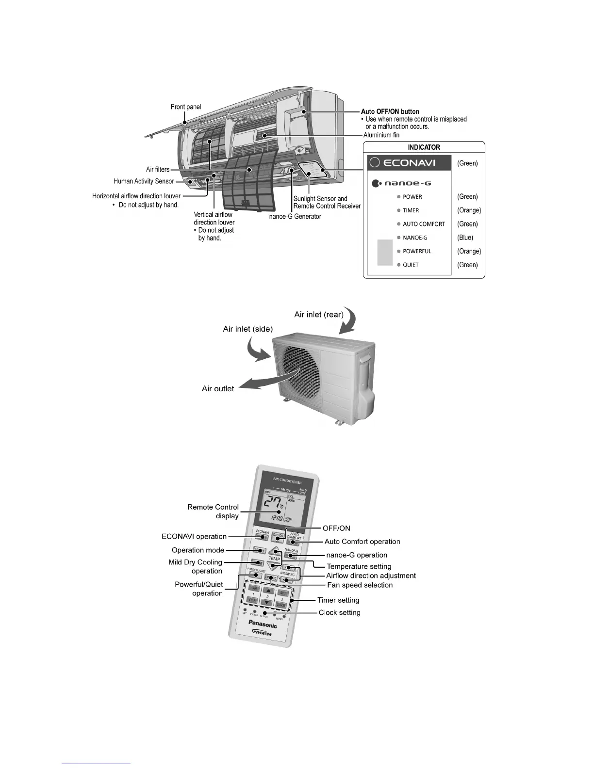Panasonic CU-E28PKR - 4 Location of Controls and Components; Indoor Unit; Outdoor Unit; Remote Control