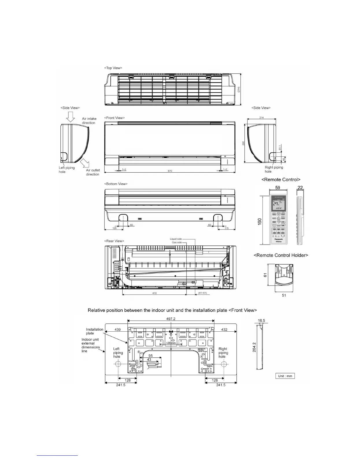 Panasonic CU-E28PKR - 5 Dimensions; Indoor Unit