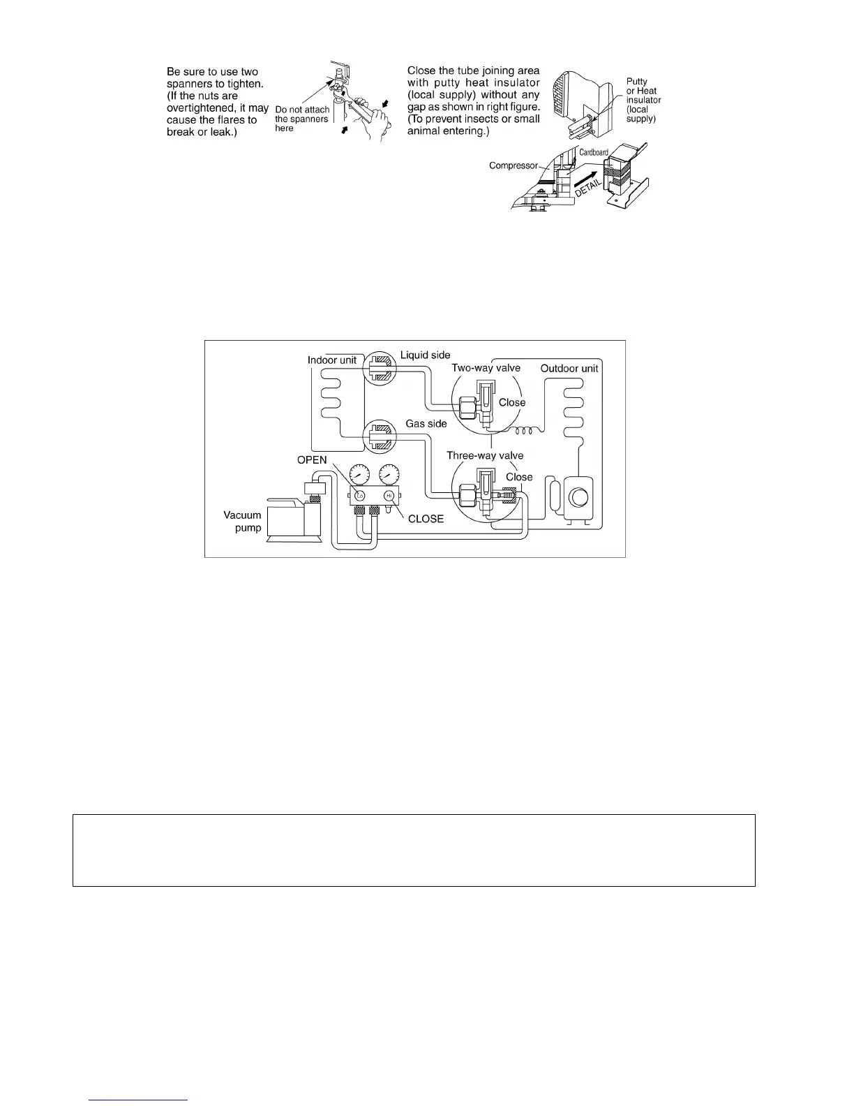 Note: BE SURE TO TAKE THIS PROCEDURE IN ORDER TO AVOID REFRIGERENT GAS LEAKAGE.