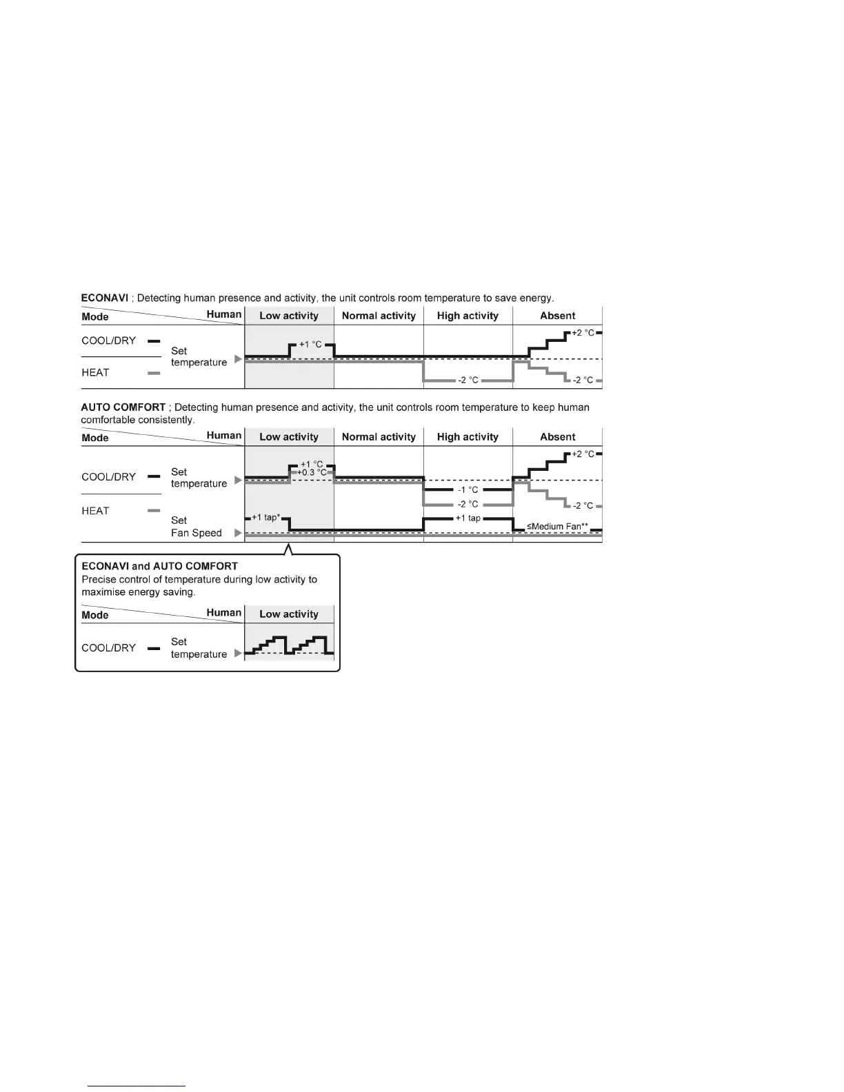 To further maximize the energy saving during ECONAVI or AUTO COMFORT operates at low activity level.