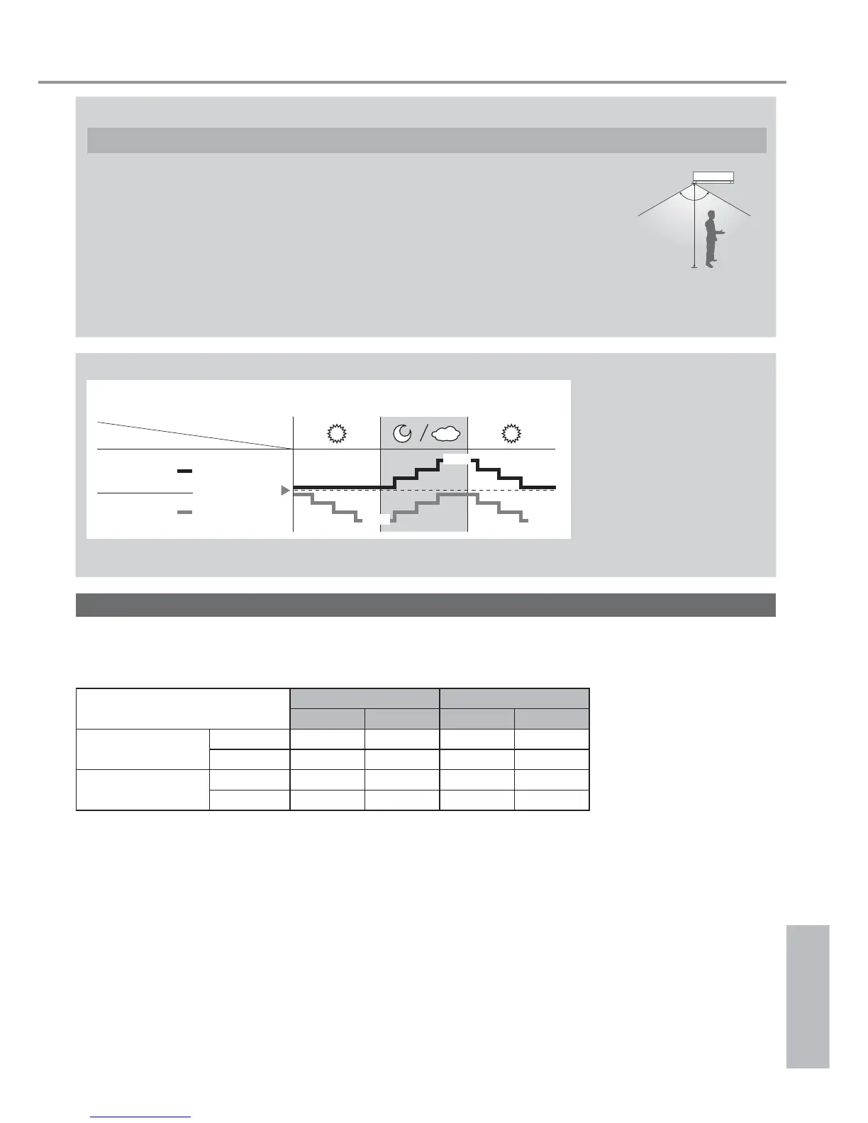 • In een vertrek zonder venster of met een dik gordijn zal de zonlichtsensor de omstandigheden beoordelen als