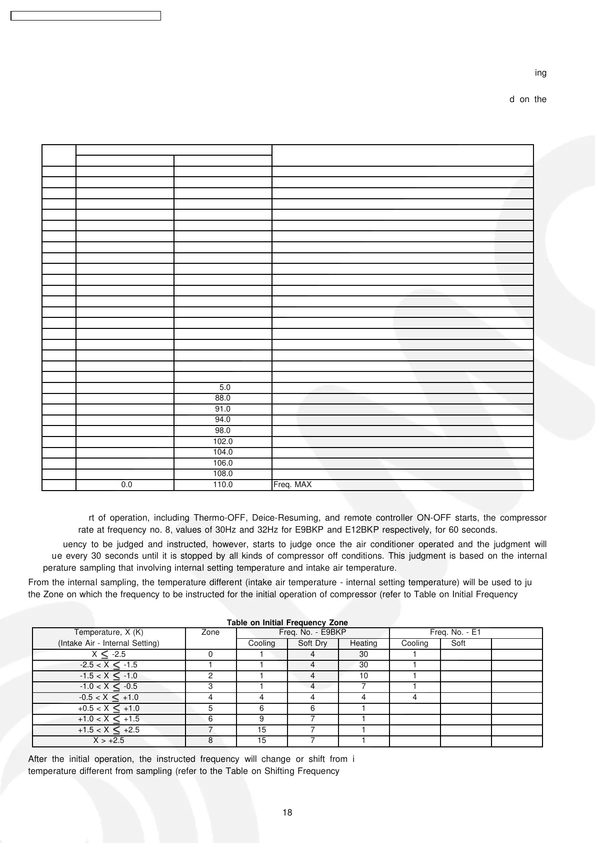 the Zone on which the frequency to be instructed for the initial operation of compressor (refer to Table on Initial Frequency Zone).
