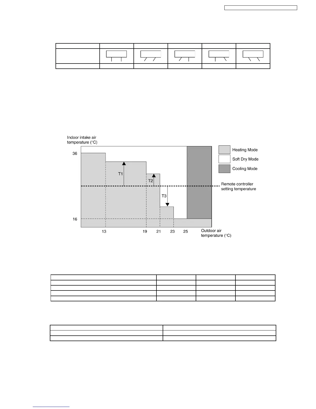 There is a temperature shifting on T1, T2, and T3 if the operation mode judged is changed from Cooling/Soft Dry to Heating or vice