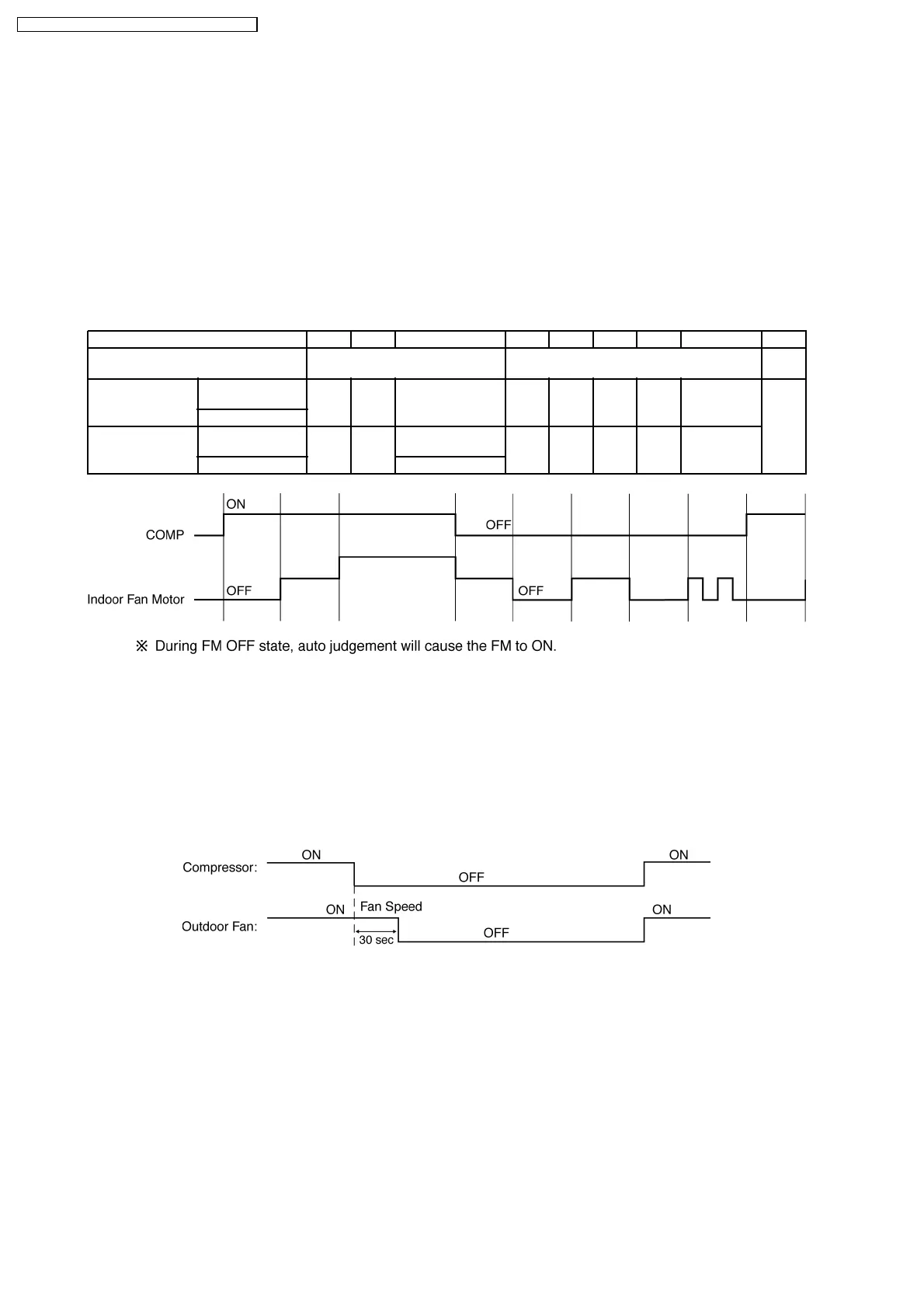 Outdoor fan motor is operated with one fan speed only. It starts when compressor starts operation and it stops 30 seconds after