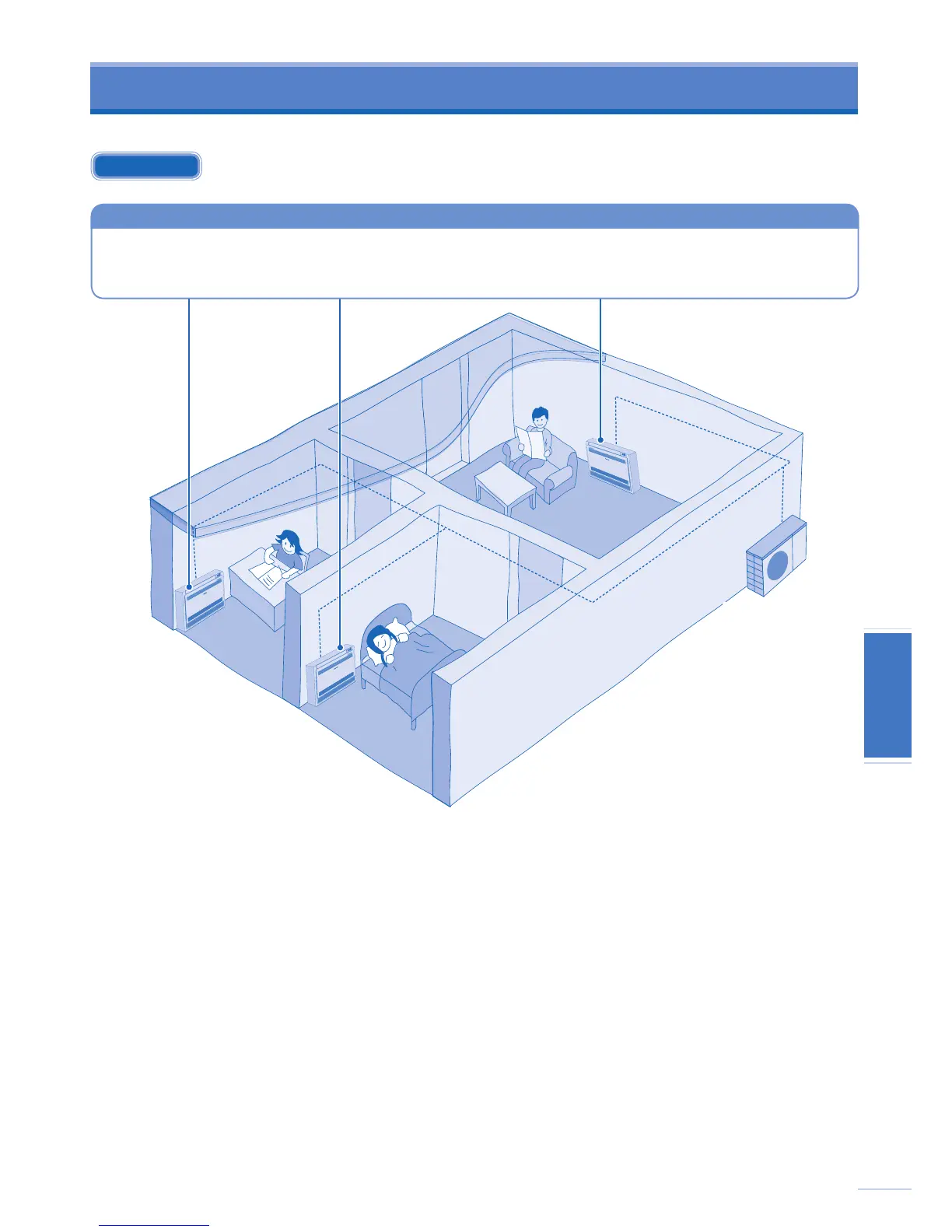 Multi-airconditionanlægget har en udendørsenhed, som er tilsluttet fl ere indendørsenheder.