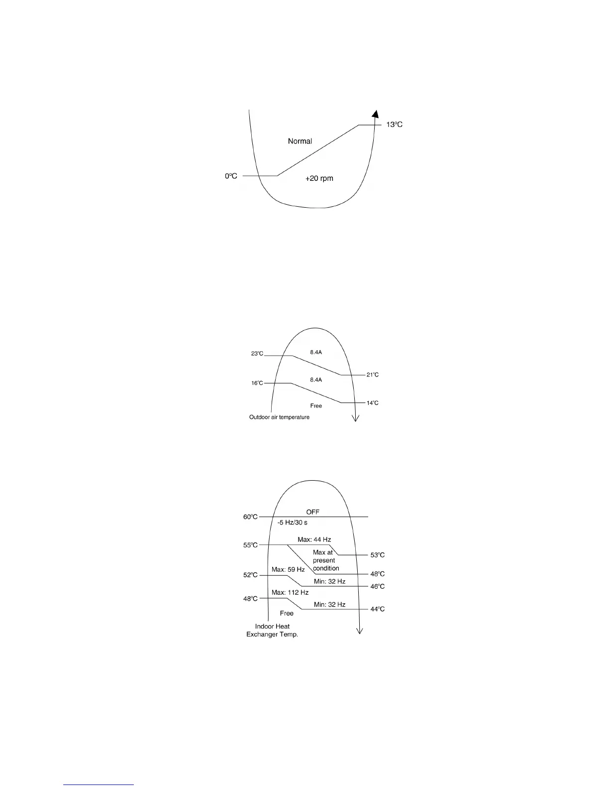 The compressor operating frequency is regulated in accordance to indoor heat exchanger temperature as shown in below figures.