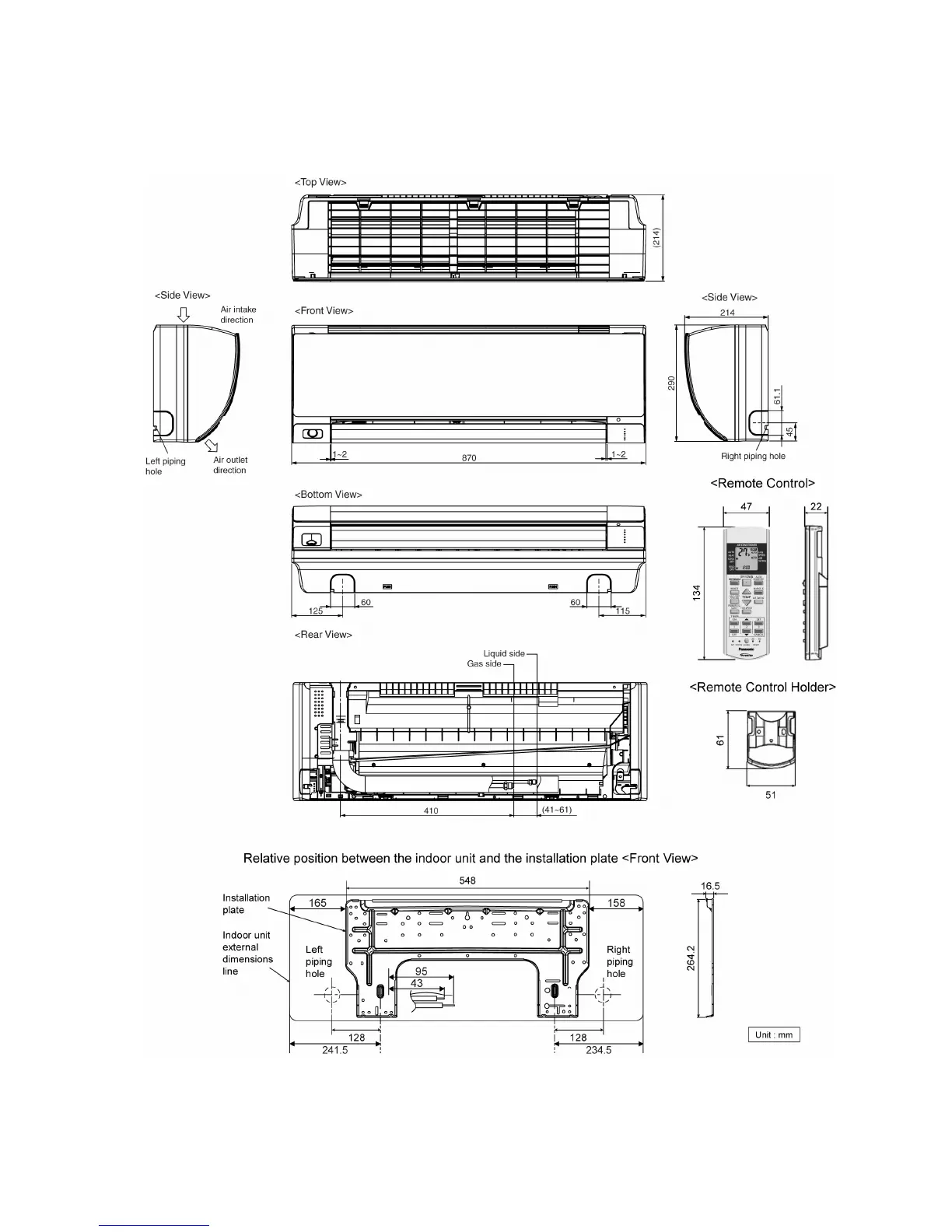 Panasonic CU-E9NKD - Unit Dimensions; Indoor Unit Dimensions