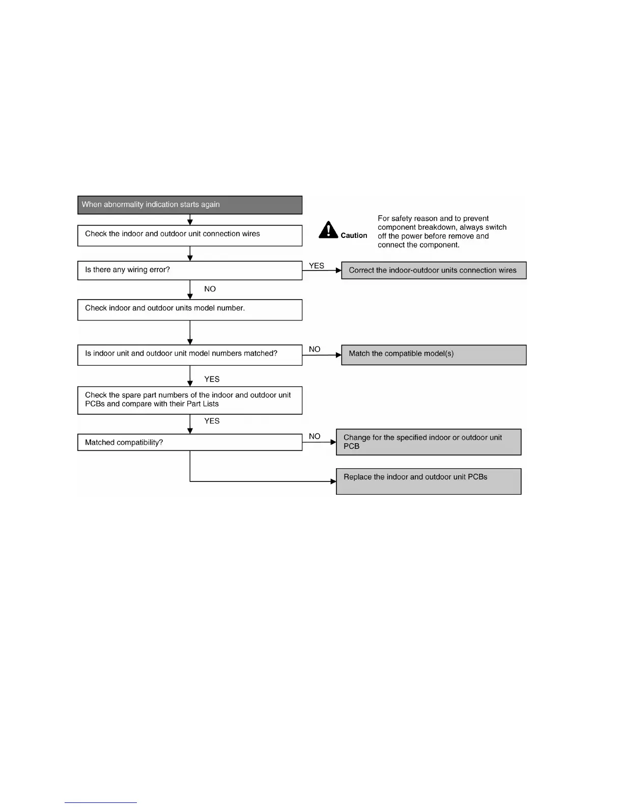 Wrong indoor unit or outdoor unit PCBs mounted.