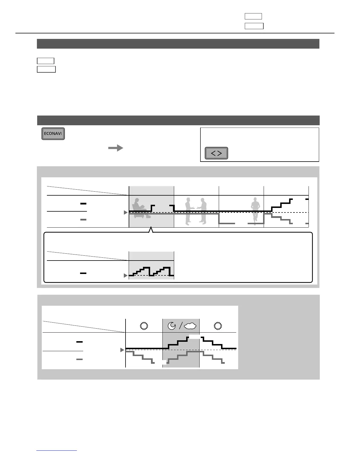 ECONAVI ; Al detectar la intensidad de la luz solar, la unidad ajusta la temperatura