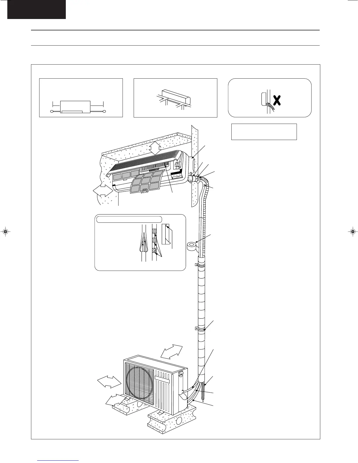 Length of power supply cord Piping direction Attention not to bend up drain hose