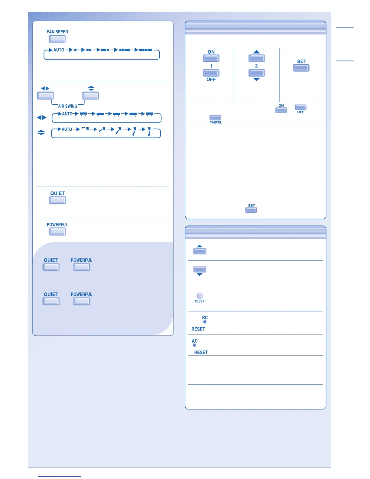 • Timer operation is based on the clock set in the remote