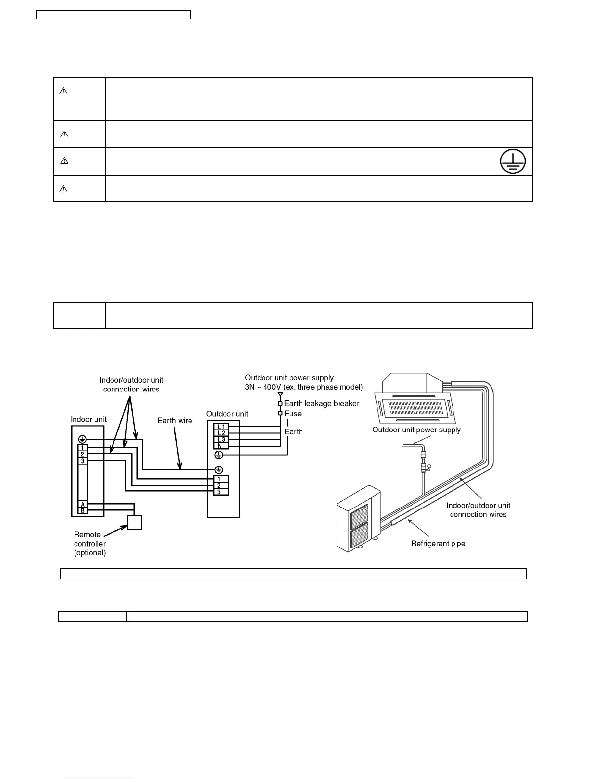 Caution Be sure to install a current leakage breaker or circuit breaker to the main power supply, otherwise electric shocks may result.