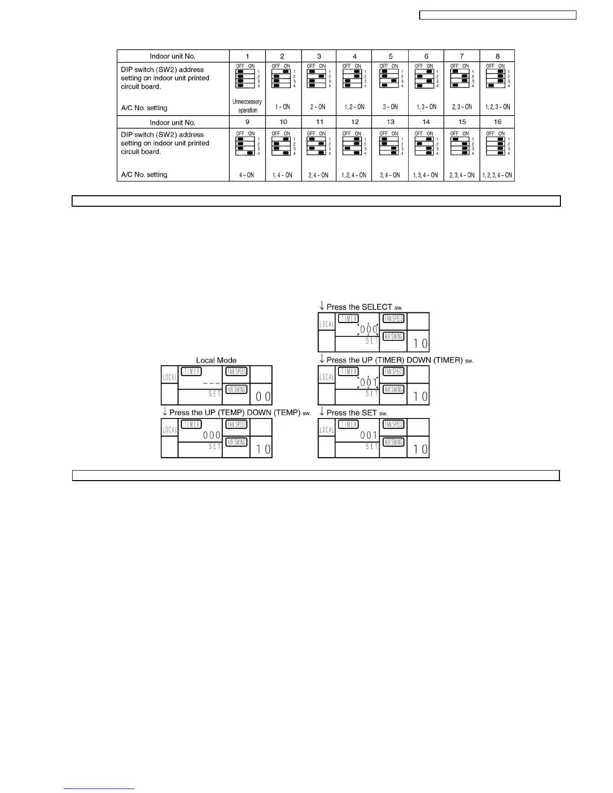 1. When operation is stopped, press for 5 seconds, continue the TEST RUN switch to display “00” (will be LOCAL MODE).