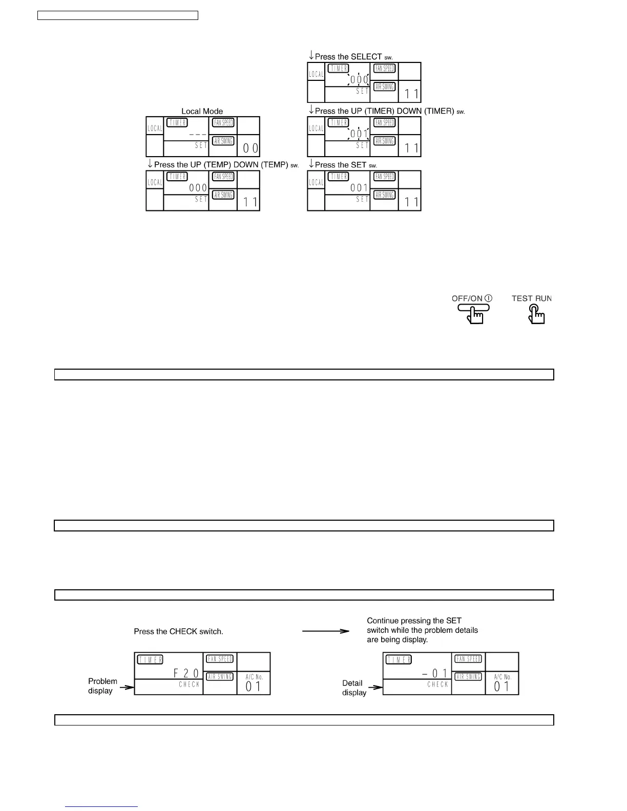 Press the TEST RUN switch within 1 minute of pressing the OFF/ON switch.