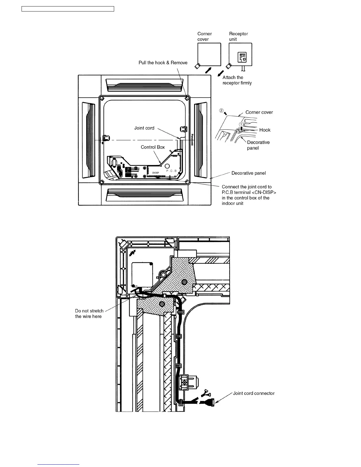 2. Remove the control box cover by removing the two fixing screws and connect the joint cord to P.C.B terminal <CN-DISP> in the