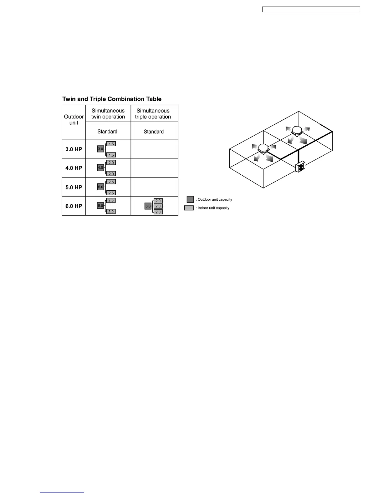 Simultaneous air conditioning of wide spaces and corners is possible. Indoor units with horsepowers can even be used in