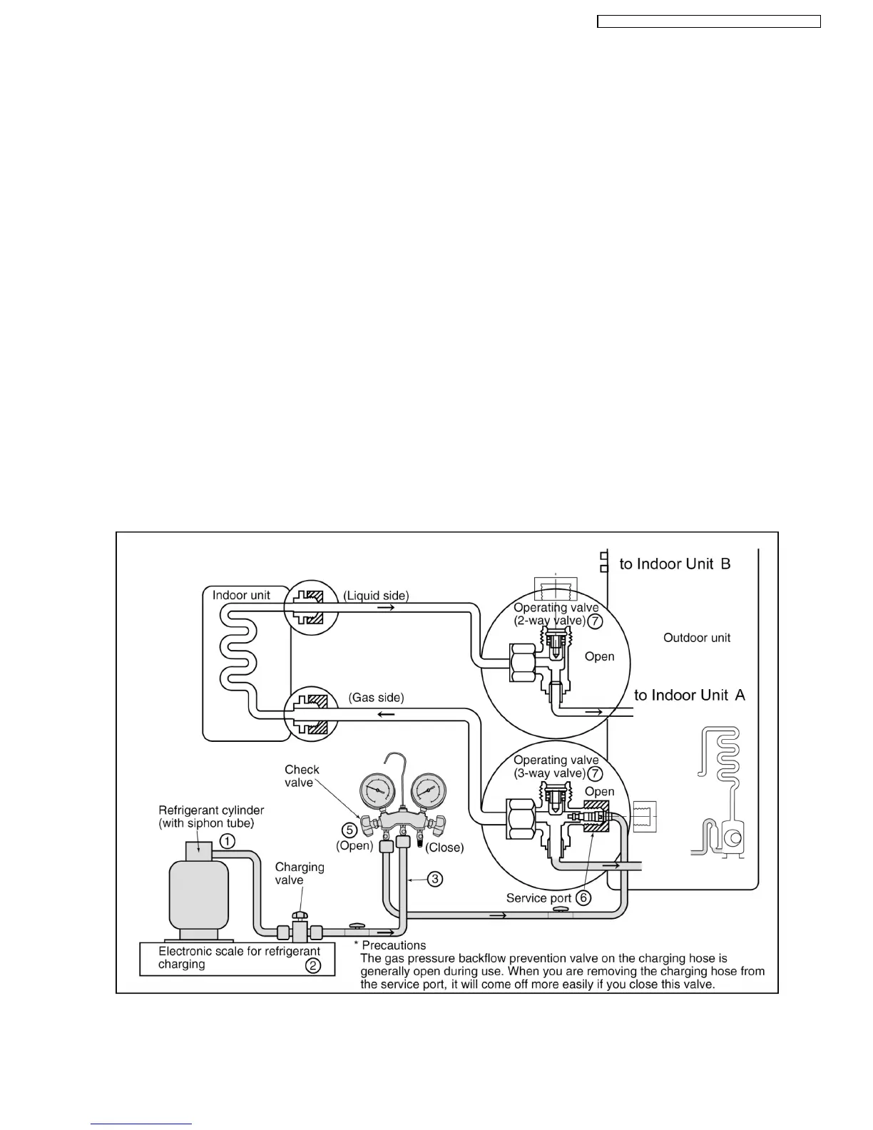 manifold gauge, and stop the operation of the unit. (2)(5)