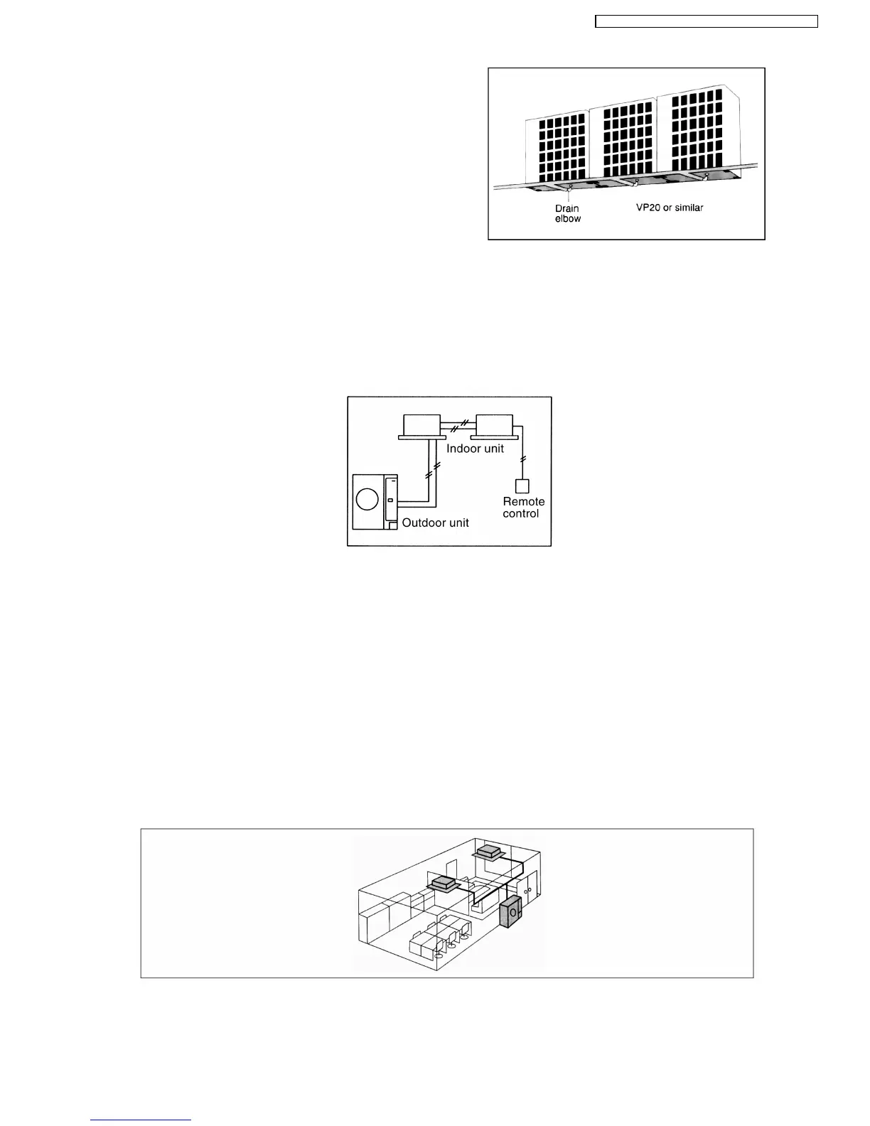 The power supply can be connected to (1) just the outdoor units, or (2) to both the indoor and outdoor units.