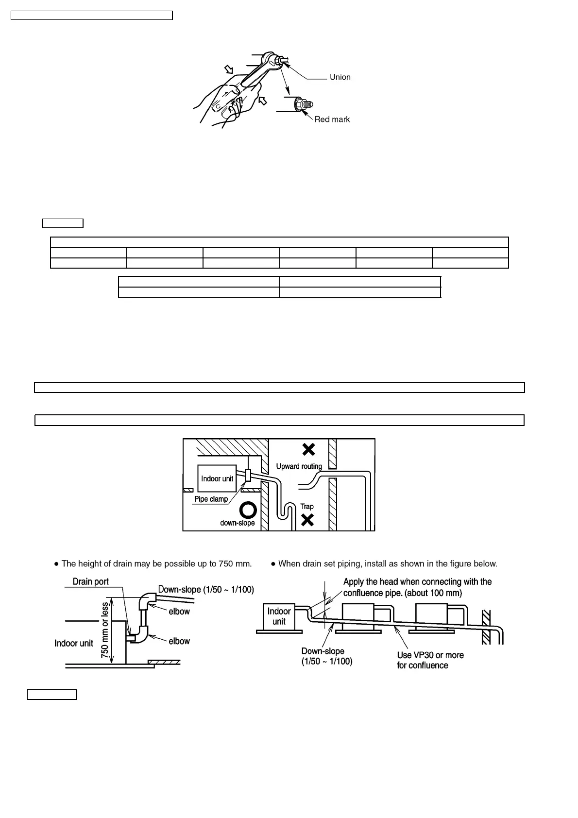 Drain piping must have down-slope (1/50 to 1/100): be sure not to provide up-and-down slope to prevent reversal flow.