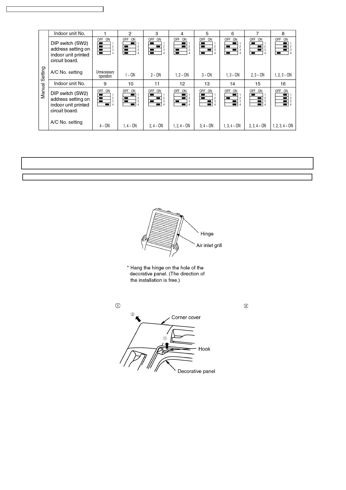 3. Fix the hanger (2 pieces) of the decorative panel to the indoor unit.