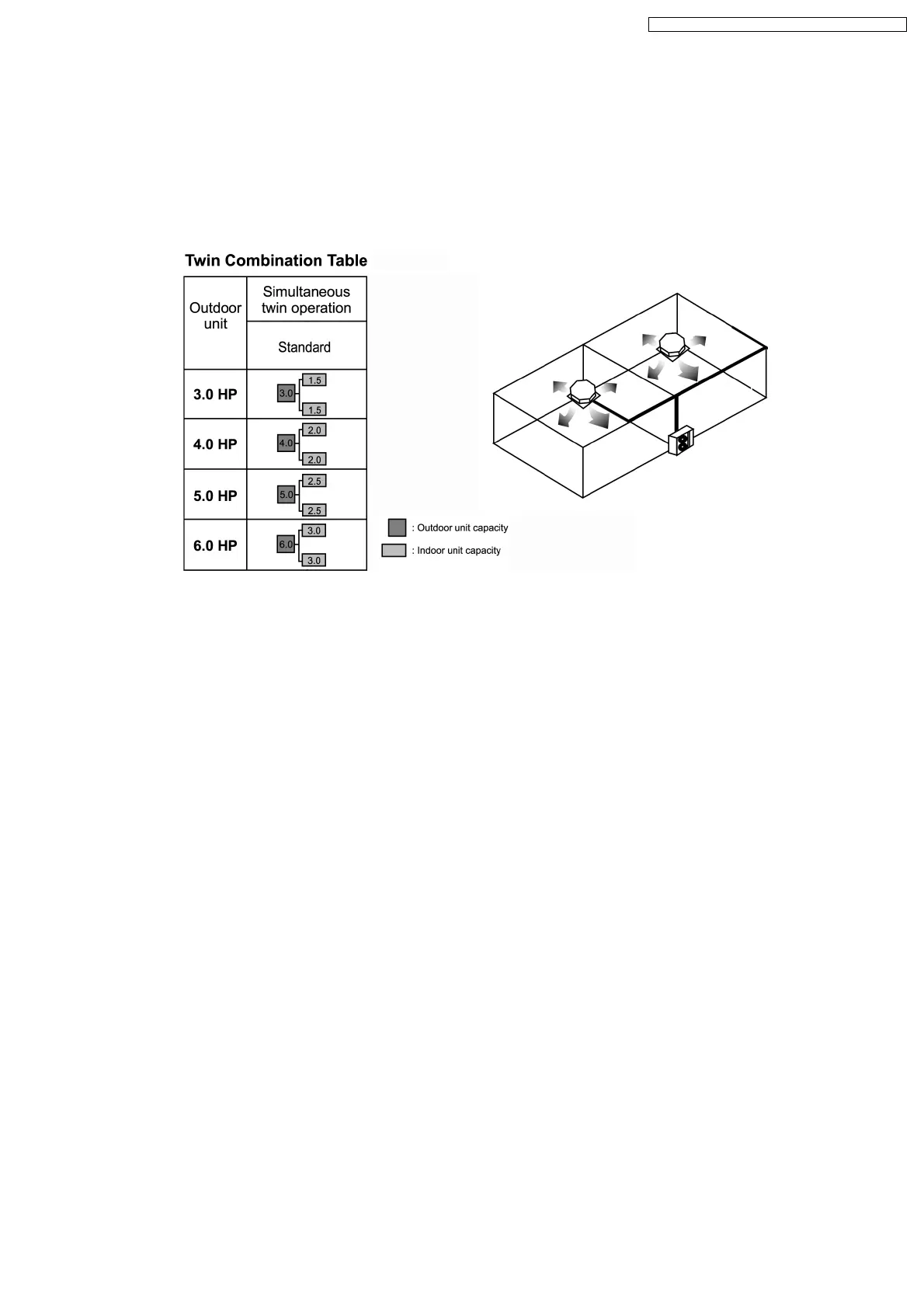 Simultaneous air conditioning of wide spaces and corners is possible. Indoor units with same horsepowers can even be used