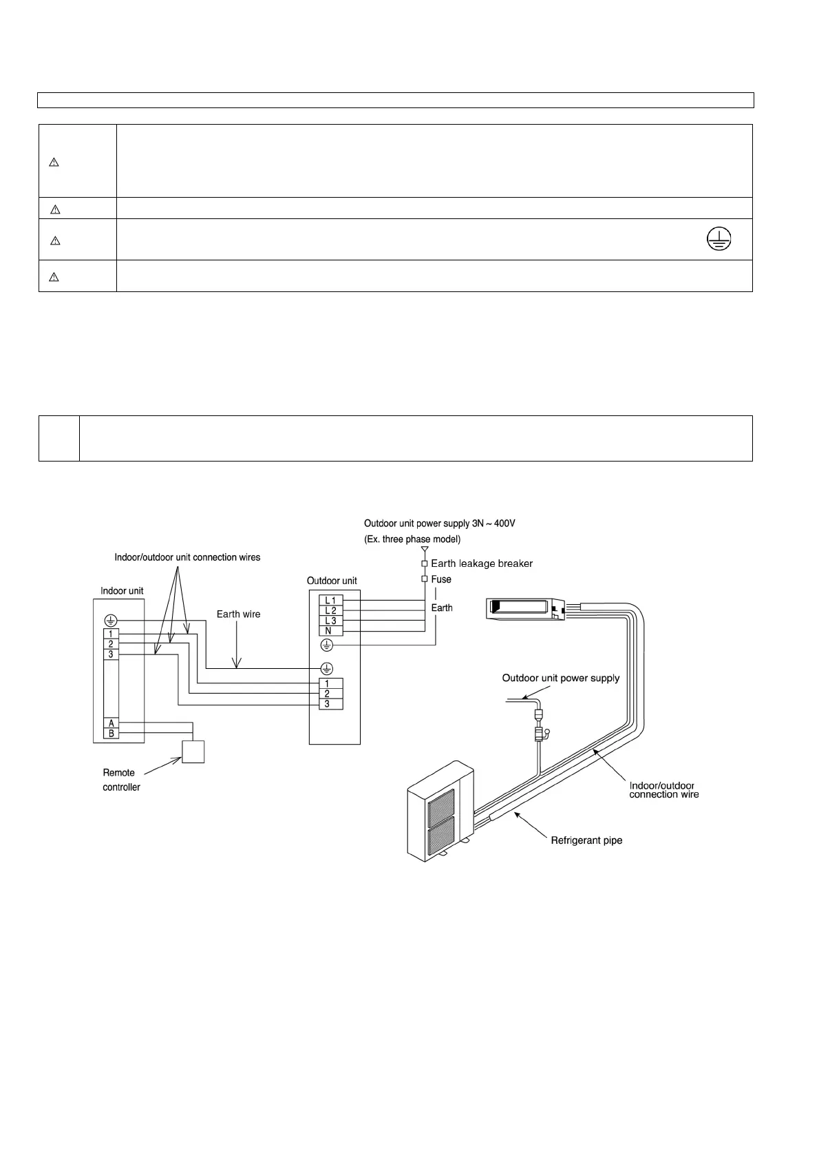 As to main power source and cable size of outdoor unit, read the installation manual attached to the outdoor unit.