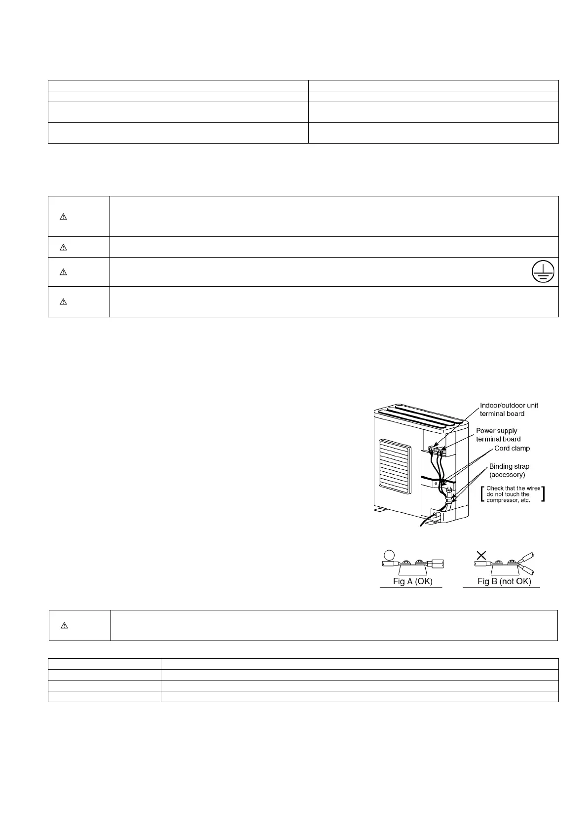 • Connect the power supply wiring and indoor/outdoor unit connection wiring according to the electrical circuit diagram