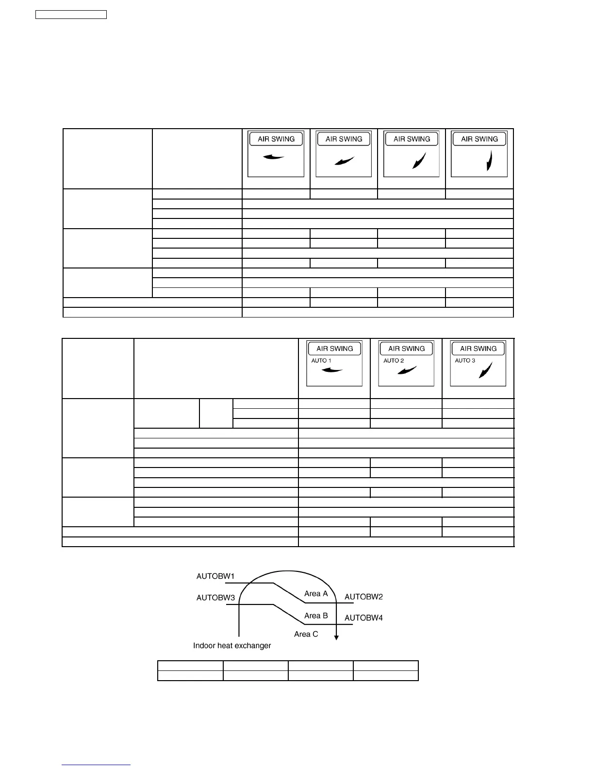Temperature range for louver control during heating operation is as follows; decide by indoor heat exchanger temperature.