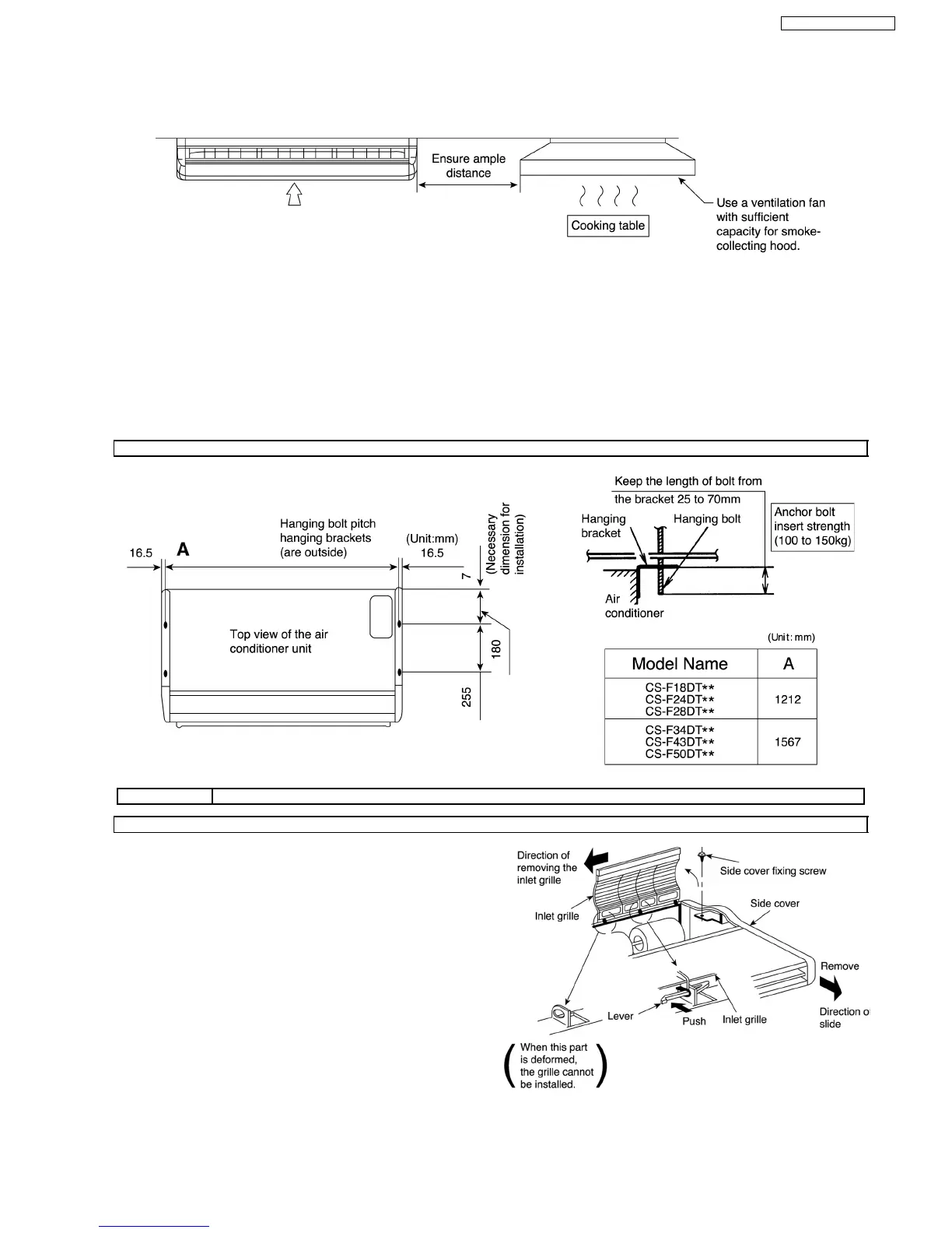 Make enough distance from cooking room to install the air conditioner in such place where it may not suck in oily steam.