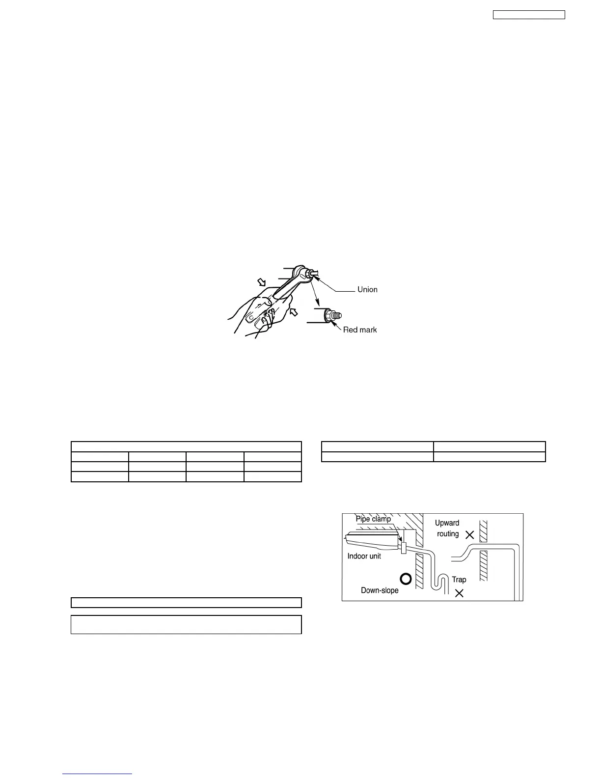 5. After deforming the pipe, align centers of the union fitting of the indoor unit and the piping and tighten them firmly with wrenches.