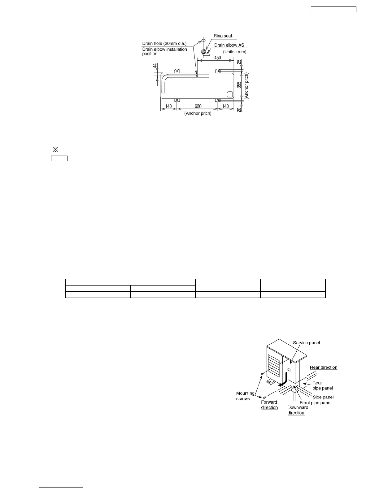 If using the drain elbow, install the outdoor unit on a base which is at least 5cm high.