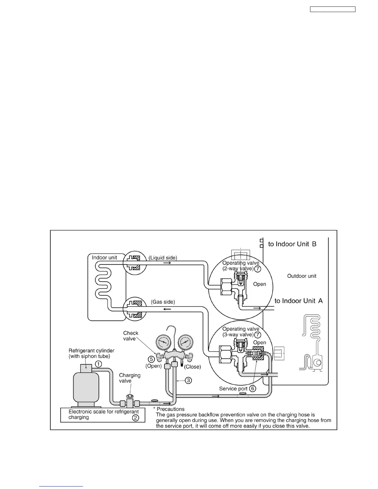manifold gauge, and stop the operation of the unit. (2)(5)