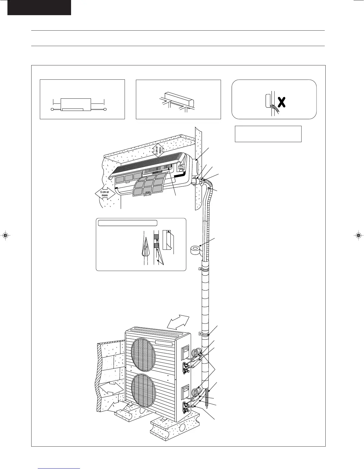 Length of power supply cord Piping direction Attention not to bend up drain hose