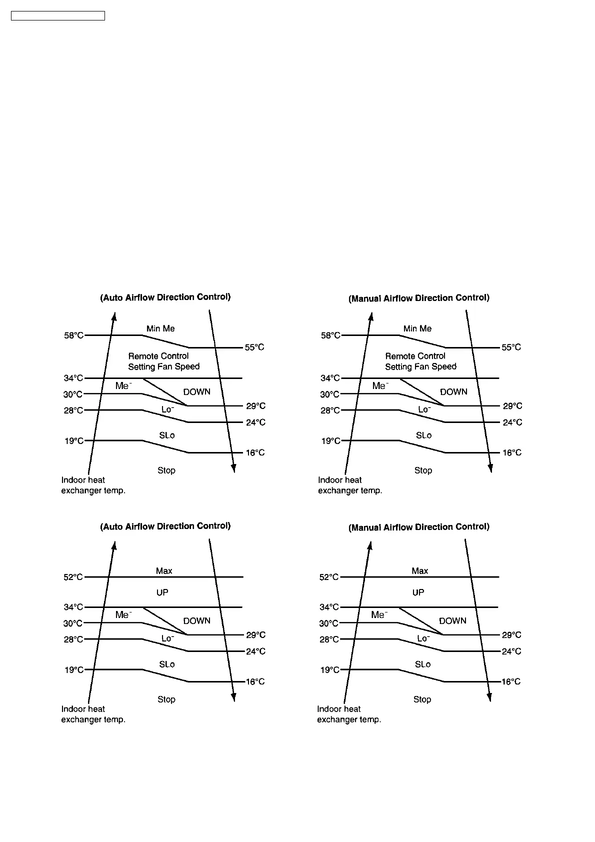 Indoor fan speed and airflow direction varies in accordance to the indoor heat exchanger temperature as shown below: