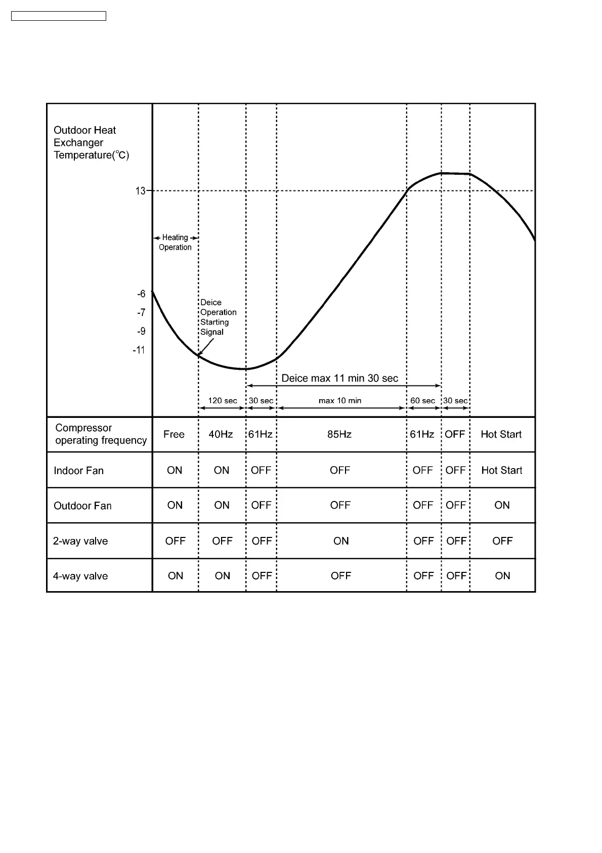compressor operates at 61Hz for 30 seconds. (Deice operation starts)