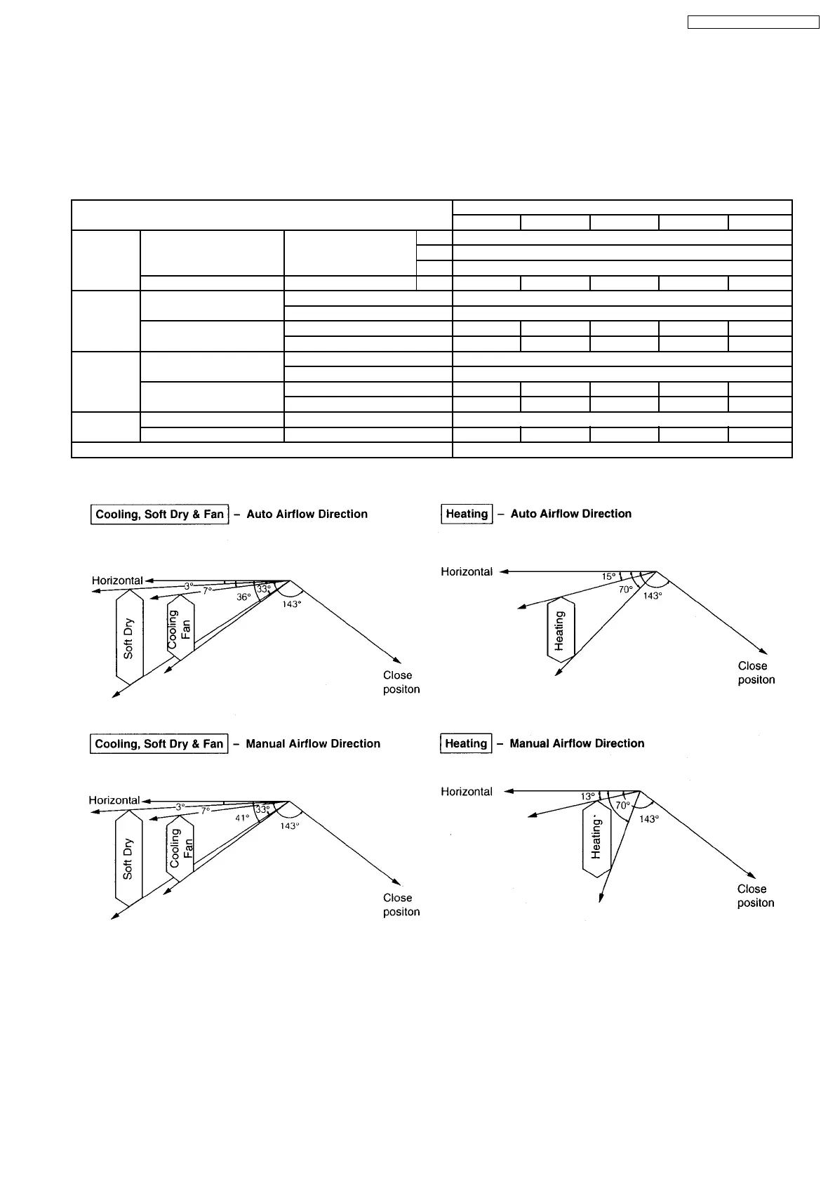 Airflow direction manual - 7° 15° 25° 33° 41°