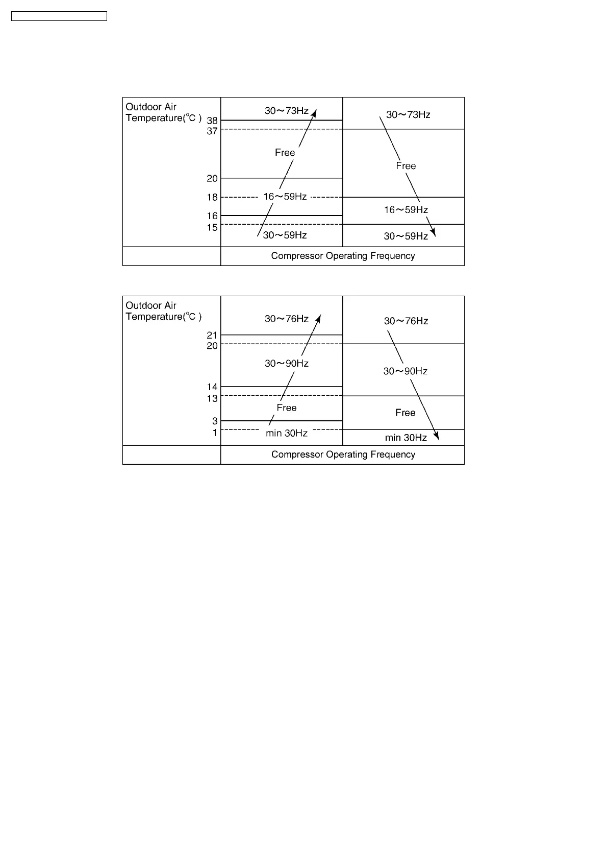 The compressor operating frequency is regulated in accordance to the outdoor air temperature.