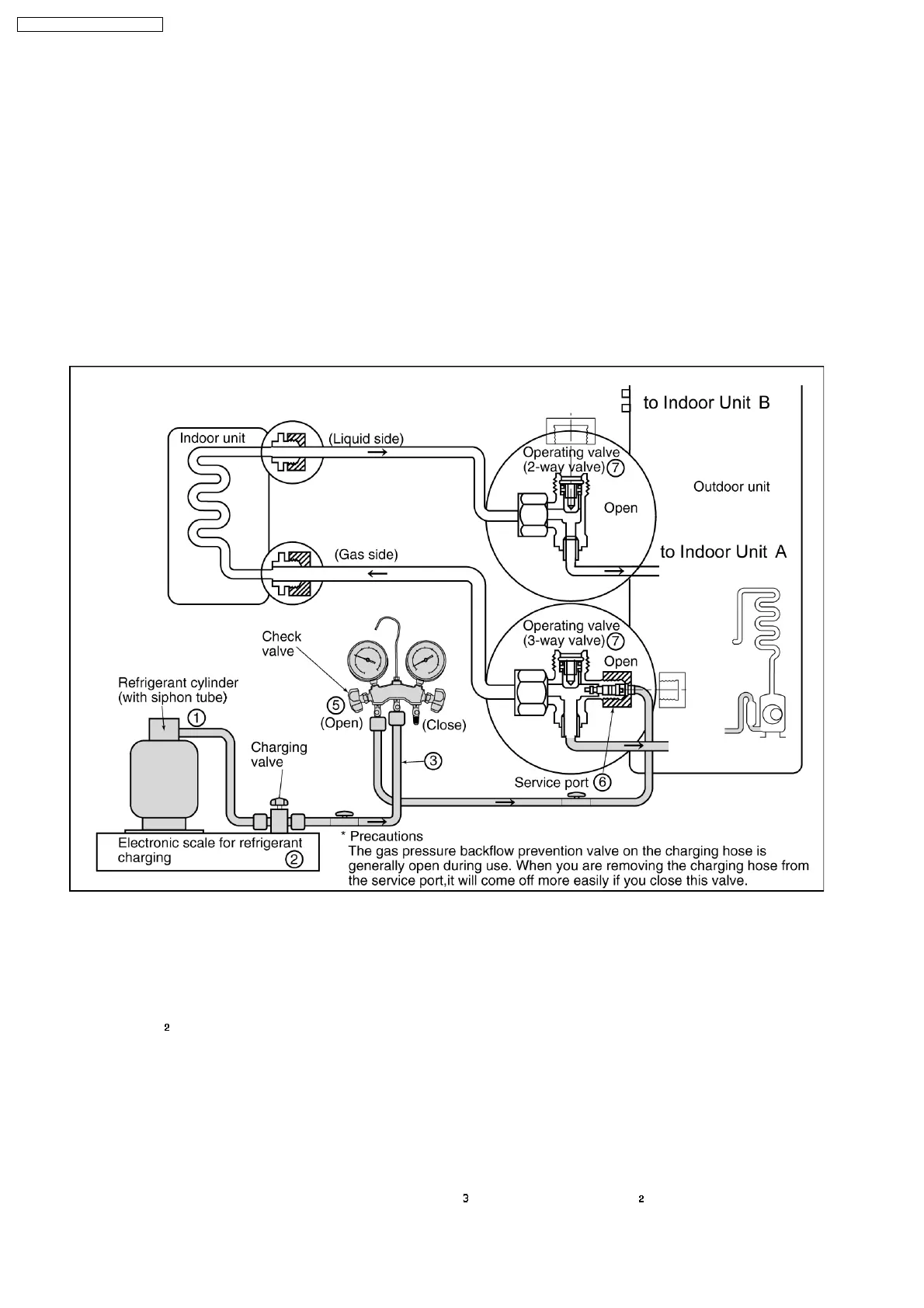 manifold gauge, and stop the operation of the unit. (2)(5)