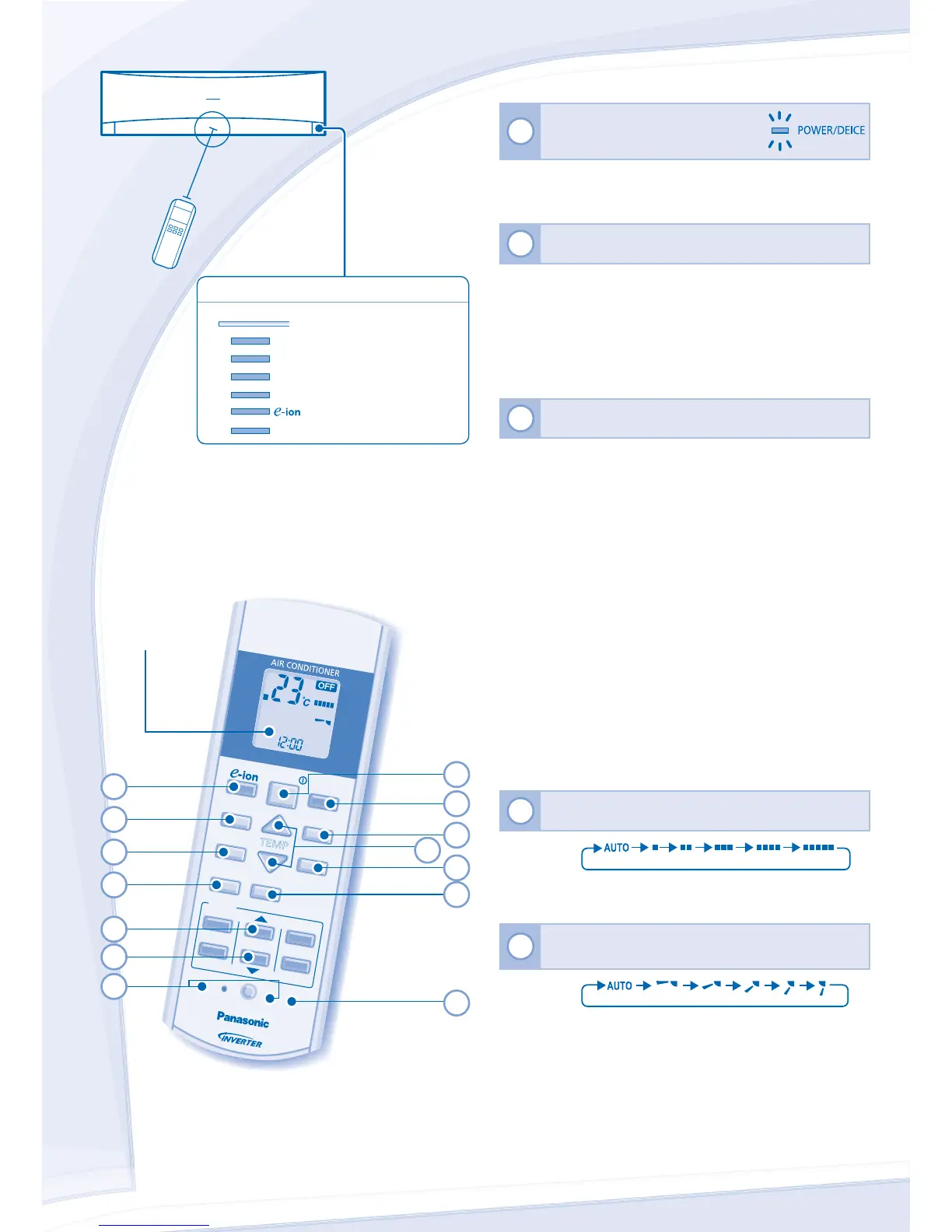 • Når driftsmodusen velges blinker strømindikatoren.