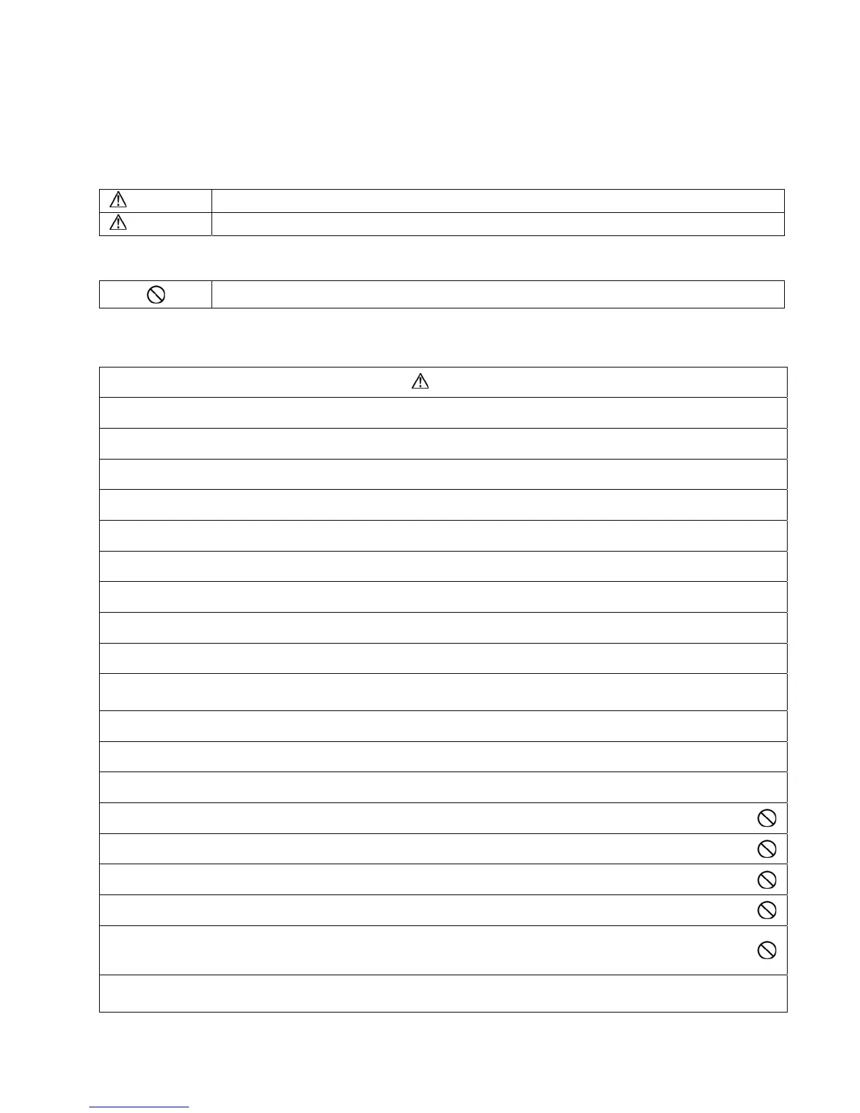 • The caution items stated here must be followed because these important contents are related to safety. The meaning of each