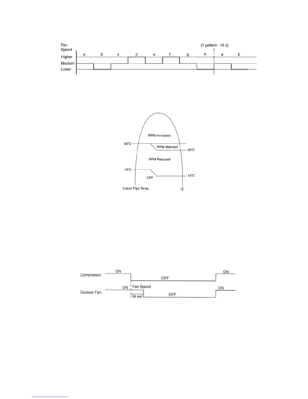• According to indoor pipe temperature, automatic heating fan speed is determined as follows.