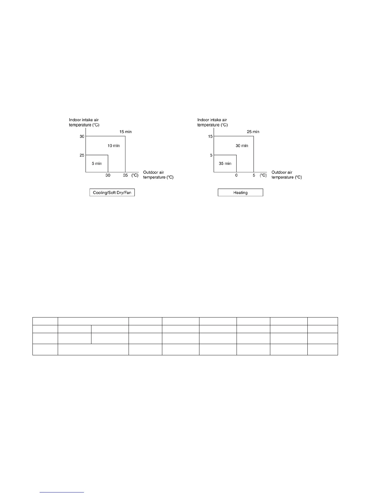 • 60 minutes before the set time, indoor (at fan speed of Lo-) and outdoor fan motor start operate for 30 seconds to