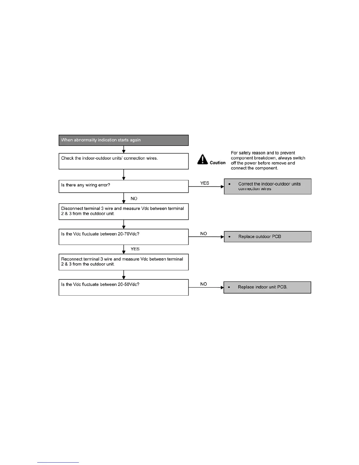 • Indoor unit-outdoor unit signal transmission error due to wrong wiring.