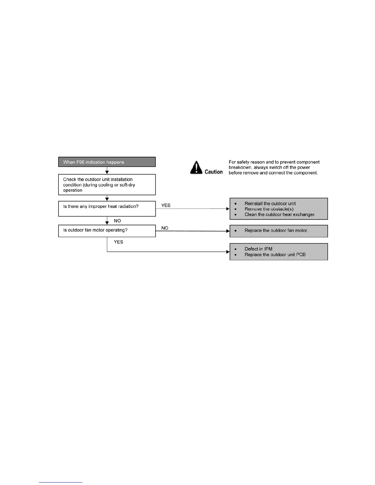 • IPM overheats due to defective of outdoor fan motor.