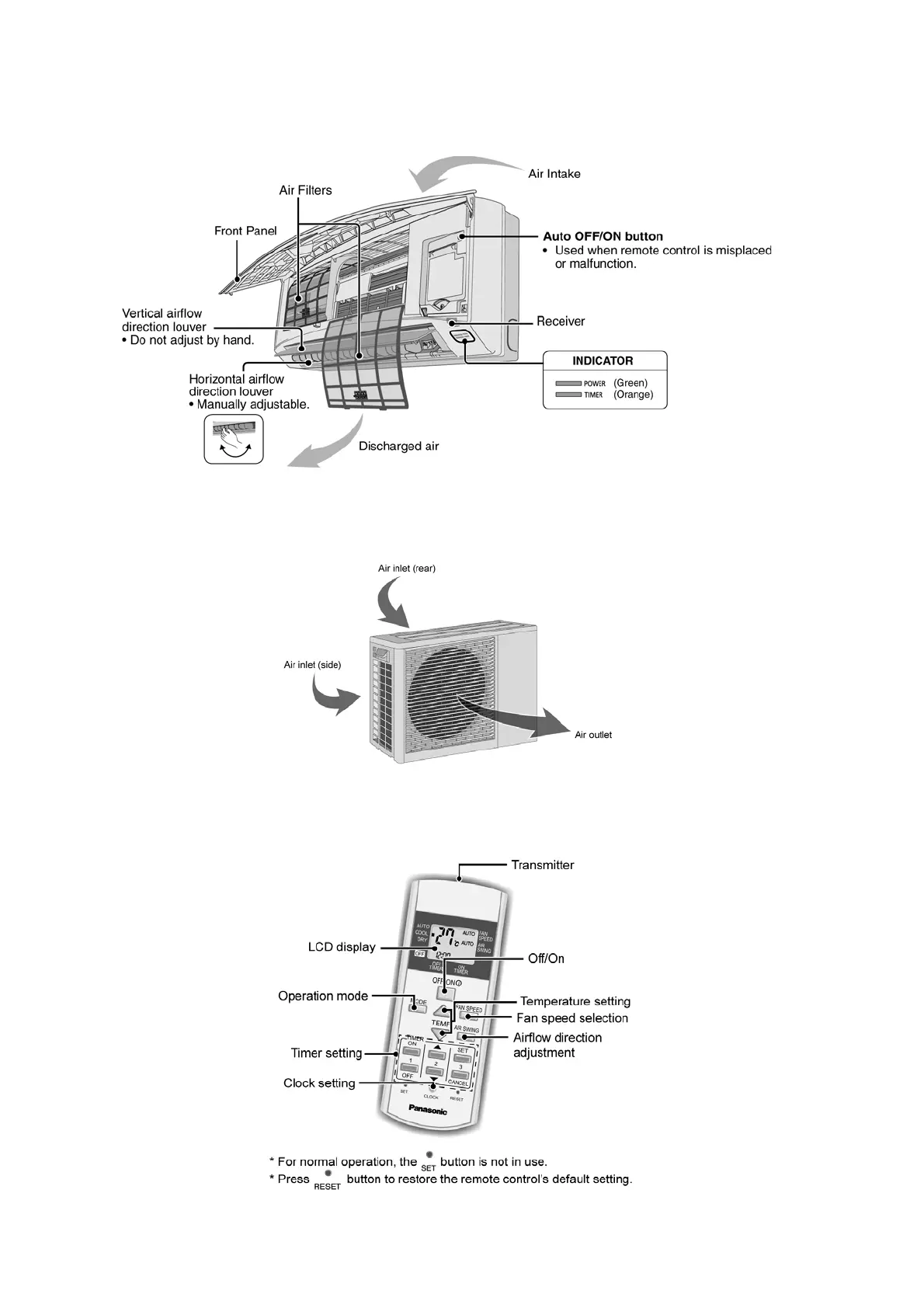 Panasonic CU-PC12JKF - Location of Controls and Components; Indoor Unit; Outdoor Unit; Remote Control