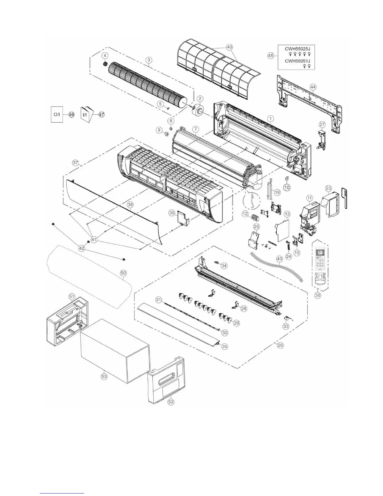 The above exploded view is for the purpose of parts disassembly and replacement.
