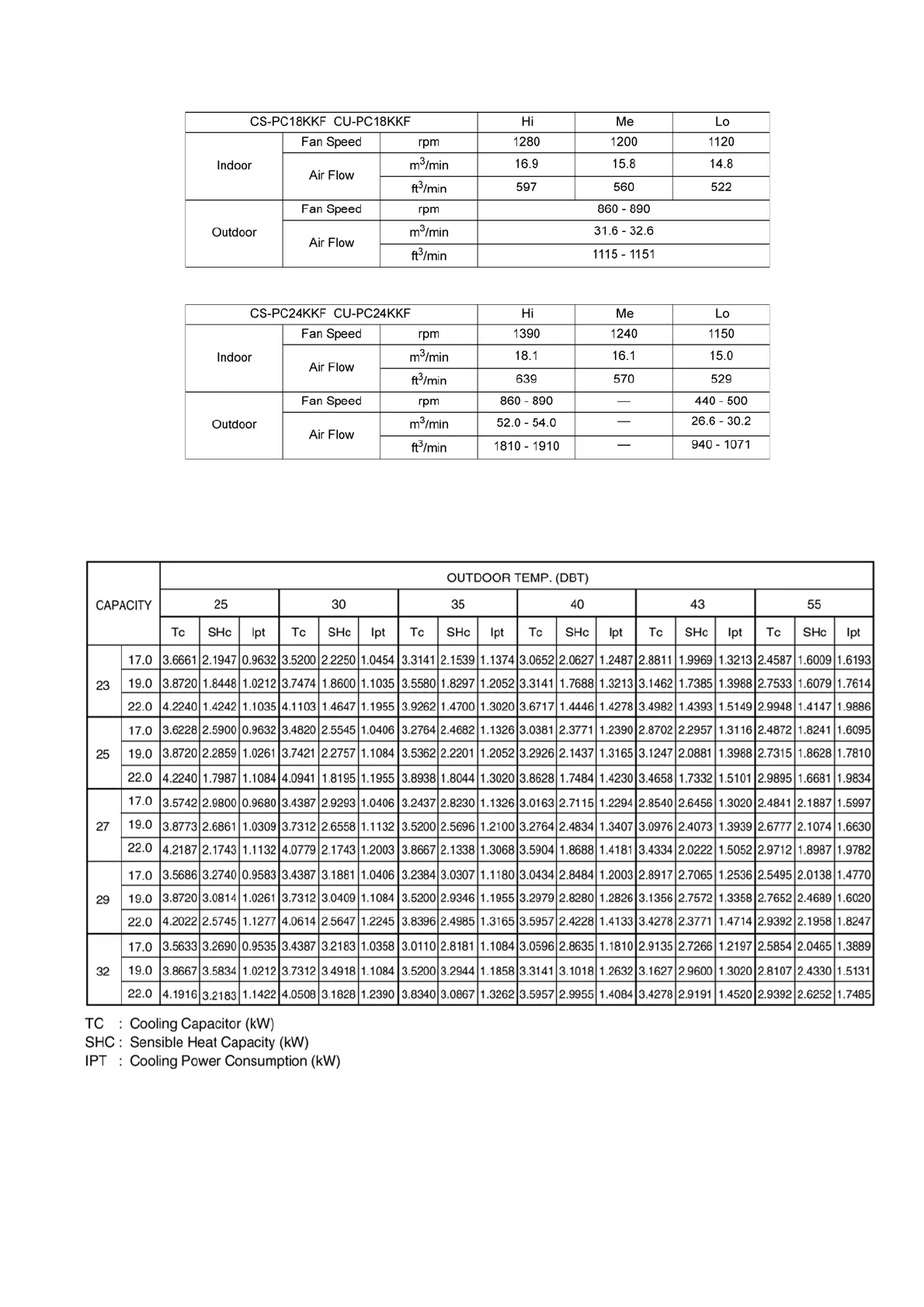 Panasonic CU-PC18KKF - Cooling Capacity Performance Data