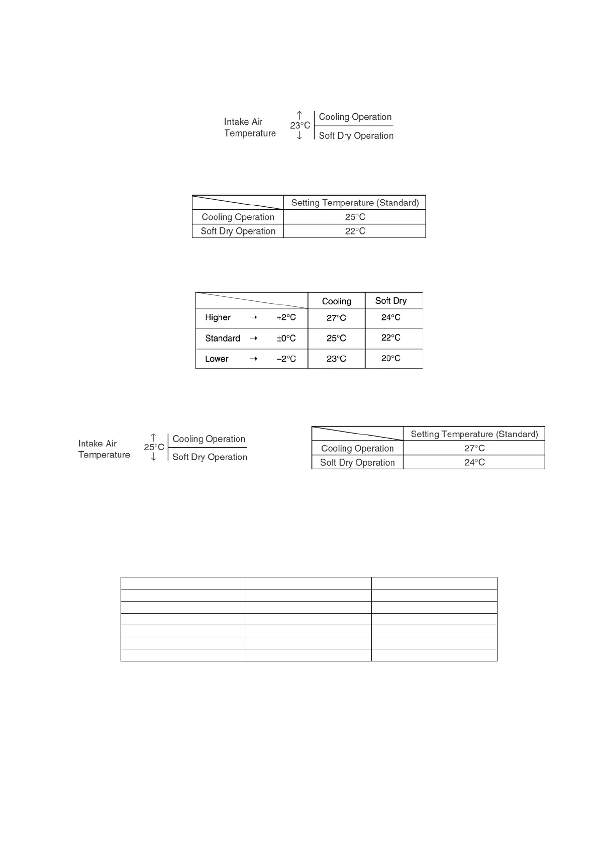 • After judged the temperature, the operation mode is determined by referring to the below standard.