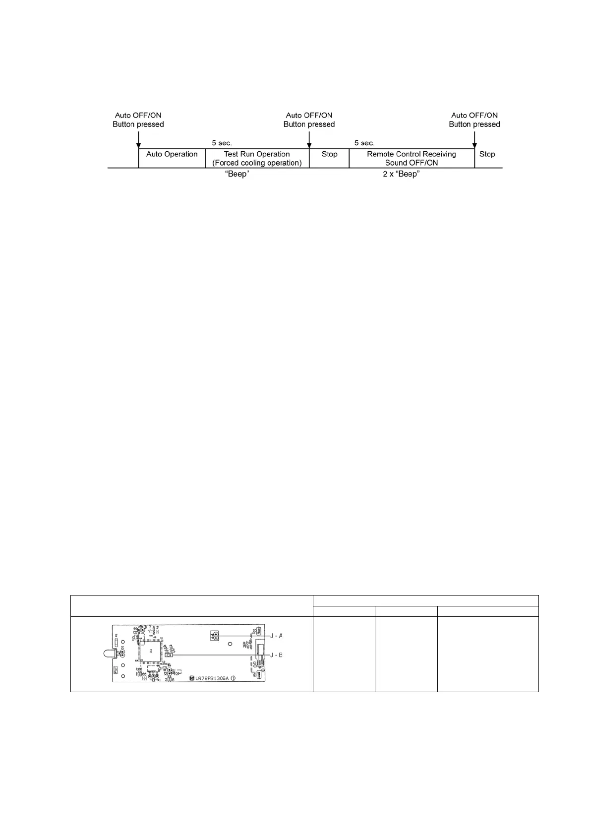The Test Run operation will be activated if the Auto OFF/ON button is pressed continuously for more than 5 seconds. A “beep”